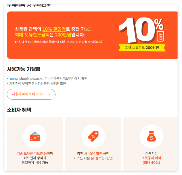 - 주의사항: 대형마트, 백화점, 대기업 프랜차이즈 직영점 등은 대부분 사용이 제한됩니다.