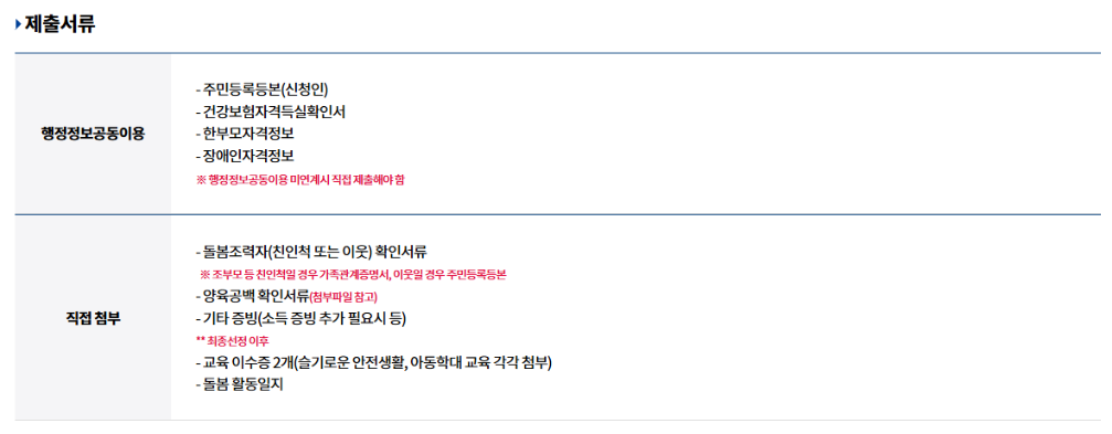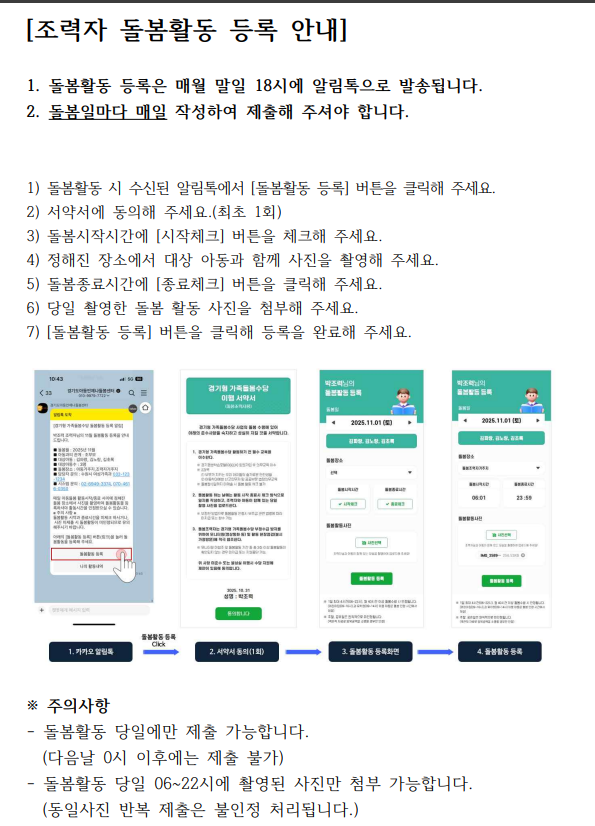 • 신청기간: 2025년에는 매월 1 ~ 15일 기간동안 신청가능(다음달 돌봄 적용)