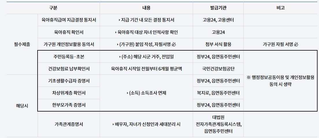 - 육아휴직급여 지급결정통지서(또는 고용보험상 증빙)