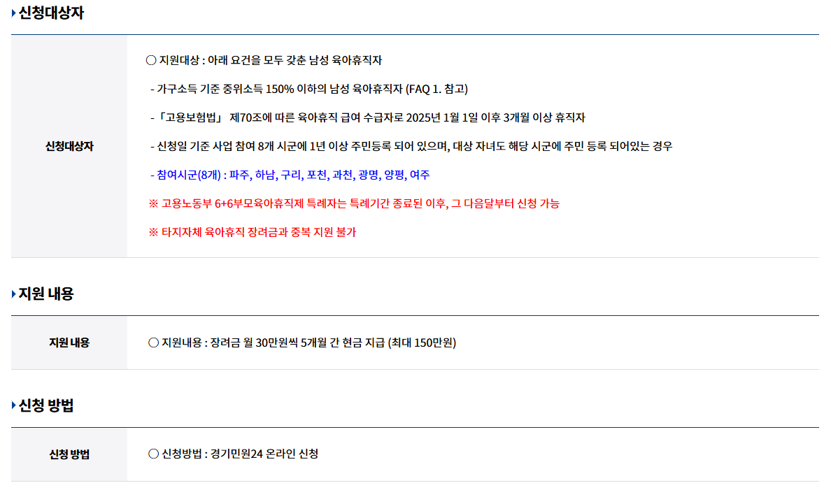 | 사업명 | 경기도 아빠 육아휴직 장려금 지원 |