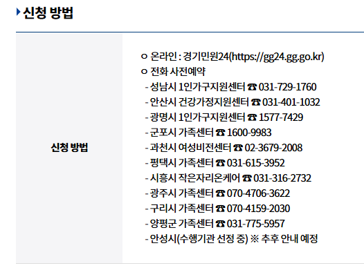 | 신청방법 | 온라인(경기민원24) 또는 시군별 추진기관 유선 신청 |