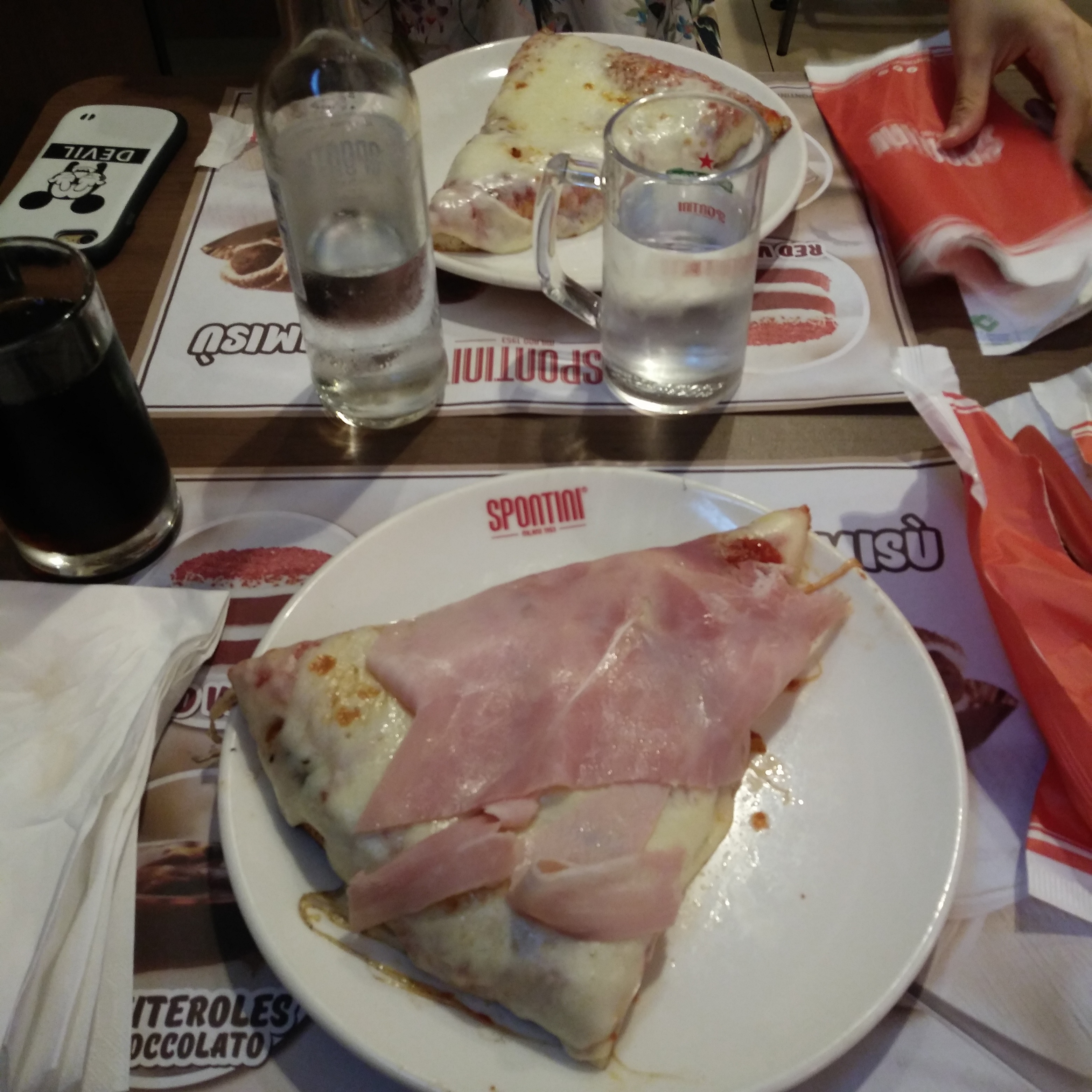 이탈리아 유학생활을 하면서 사실 처음에 가장 힘들었던 게 음식이었습니다. 우리나라와 전혀 다른 음식 스타일이다 보니 적응하는데 꽤 오랜 시간이 필요했습니다. 특히 피자 같은 경우 생전 처음 보는 피자 모습에 놀랐었는데요, 토핑과 각종 소스가 많이 올라가 있는 우리나라의 피자에 비해 이탈리아의 피자는 '정말 이래도 되나?' 싶을 정도로 토핑이 없습니다. 처음 스폰티니라는 유명한 이태리 피자집에 갔을 때 토핑을 고르는데 버섯, 프로슈토, 치즈, 햄... 이것밖에 없어서 정말 놀랐습니다. 그리고 이태리 사람들은 피자 1판을 한 끼 식사로 먹습니다. 우리나라는 보통 조각을 내서 같이 먹는데 이태리는 혼자서 1판을 다 먹고 위의 사진처럼 큰 조각을 한 끼 식사로 먹곤 합니다. 처음에는 소스가 없고 토핑이 없어서 밍밍하고 무슨 맛이야 했는데.. 지금 생각해보면 제~일 맛있는 음식이었습니다. 이태리에 친구들이 놀러 왔을 때 가장 먼저 맛있는 곳이라고 소개해줬던 곳이 저 스폰티니 피자집이었습니다. 최근 강남에 가보니 스폰티니가 입점했더라고요, 한번 방문해서 맛보시는 것도 좋을 것 같습니다. 저는 개인적으로 프로슈토를 좋아합니다. 이태리 사람들은 피자에 파인애플 피자 같은 과일이 올라가 있는 피자에 대해 극혐을 합니다.. 그게 피자야? 그건 피자라고 할 수 없어 what!?!?!? 미쳤어!라는 반응이더라고요. 피자에 대한 자부심이 굉장히 강하고 다른 피자는 인정하지 않는 경향이 있었습니다. 마르게리타 피자는 그중에서도 가장 기본 of 기본 피자입니다. 바질, 치즈, 토마토를 이용해서 만든 피자로 초록색 /  흰색 / 빨간색의 색은 이탈리아 국기를 상징합니다.