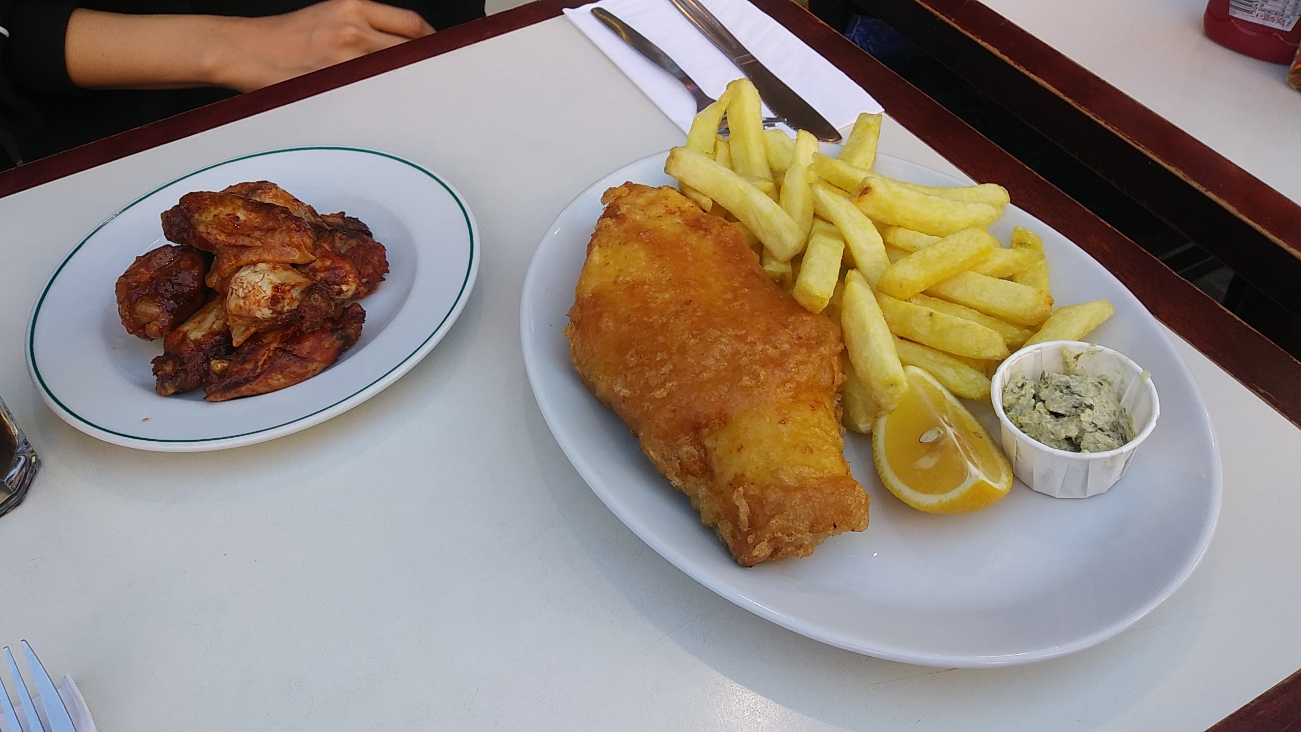 워낙에 기대를 안 하고 갔던 음식이라서 그런지 오히려 괜찮았습니다. 영국에 가기 전에 피시 앤 칩스는 '진짜 맛이 없다'라는 글을 하도 많이 봐서 '맛이 없나 보다 그냥 경험상 먹어보지 뭐~'라는 마음으로 먹었는데 그래서 그런지 의외로 맛있었습니다. 그런데 제가 느꼈던 흥미로운 점은 (런던 기준) 피시 앤 칩스 식당보다 일본 초밥집이 더 많았던 것 같습니다. 우리나라로 치면 강남 같은 핫플에 줄을 길게 선 가게들을 보면 대부분 초밥 집이었습니다. 낱개로 파는 초밥 편의점(?!)부터 정말 전통 초밥집, 회전초밥집 등등 일본 음식을 굉장히 좋아하는 것 같았습니다. 이에 반해 한식당은 많이 없어서 조금 아쉬웠습니다.