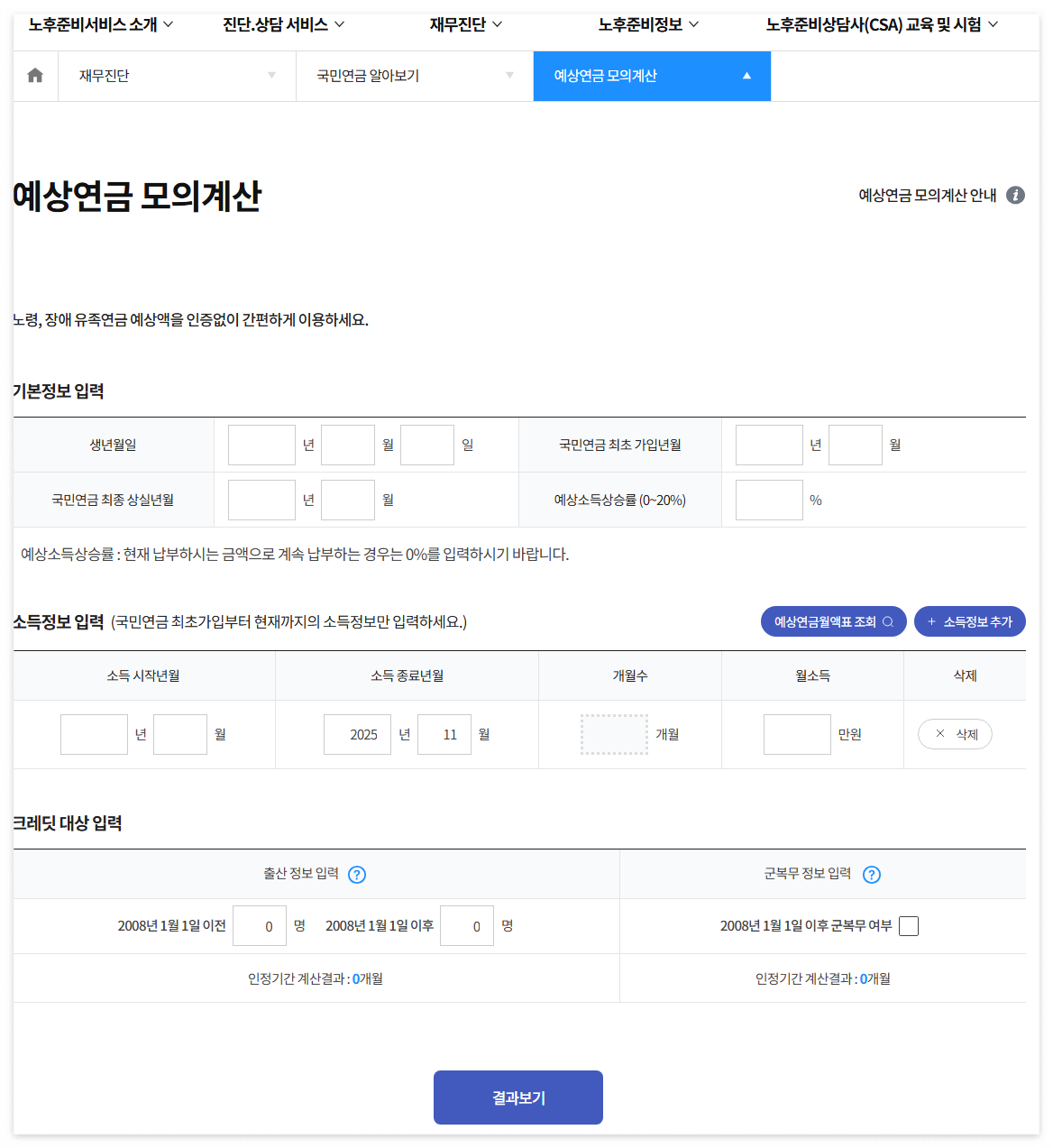 예상연금 모의계산, 예상연금 간단계산을 할 수 있습니다.