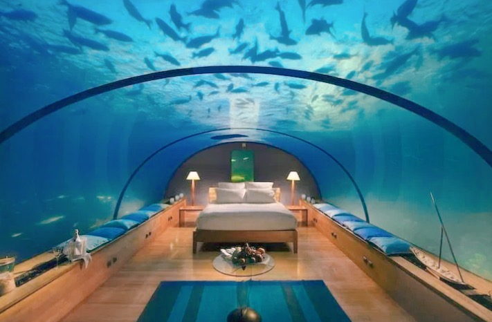 해저 호텔 또한 워낙에 세계 곳곳에 많아서 이미 익히 알고 있으리라 생각됩니다. 그중에서도 가장 유명한 곳이 탄자니아 북동부 펨바 섬 앞에 떠 있는 만타 리조트 일 것입니다. 위의 사진처럼 침대 옆에 물고기가 지나다니는 사진을 많이 모셨을 겁니다. 몰티브나 각종 휴양지에는 이미 많이 있는 유형의 호텔입니다. 물아래에 위치하고 있기 때문에 침대에 누워서 360도 돌아가면서 맑은 물과 형형색색의 물고기 그리고 아름다운 광경을 볼 수 있다는 것이 최대의 장점인 것 같습니다.