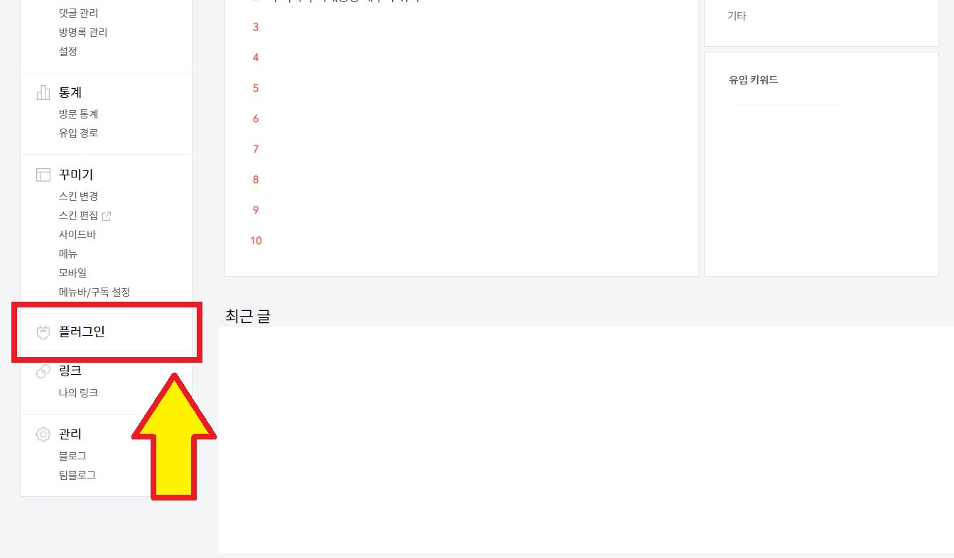 Step 4. 티스토리 설정 화면에서 [플러그인] 클릭하기