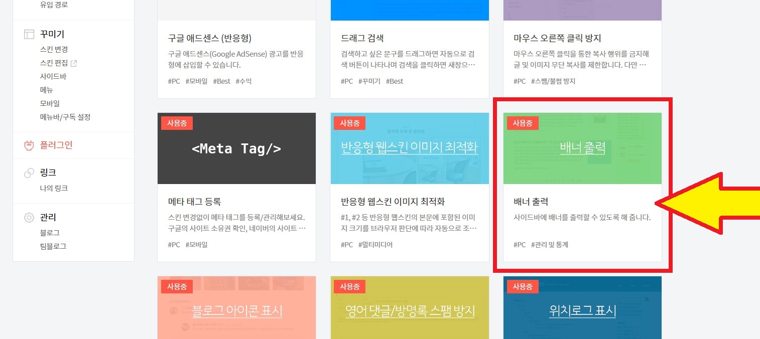 Step 5. 다양한 플러그인 중 [배너 출력] 클릭하기