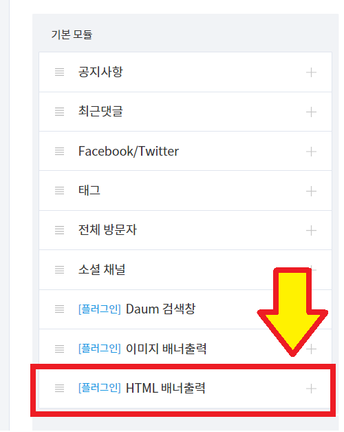 Step 8. 사이드바에서 [HTML 배너출력] 옆의 + 버튼 클릭하기