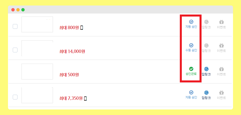 > 수동 승인은 심사를 거쳐야만 나의 사이트에 링크를 게재 할 수 있습니다.