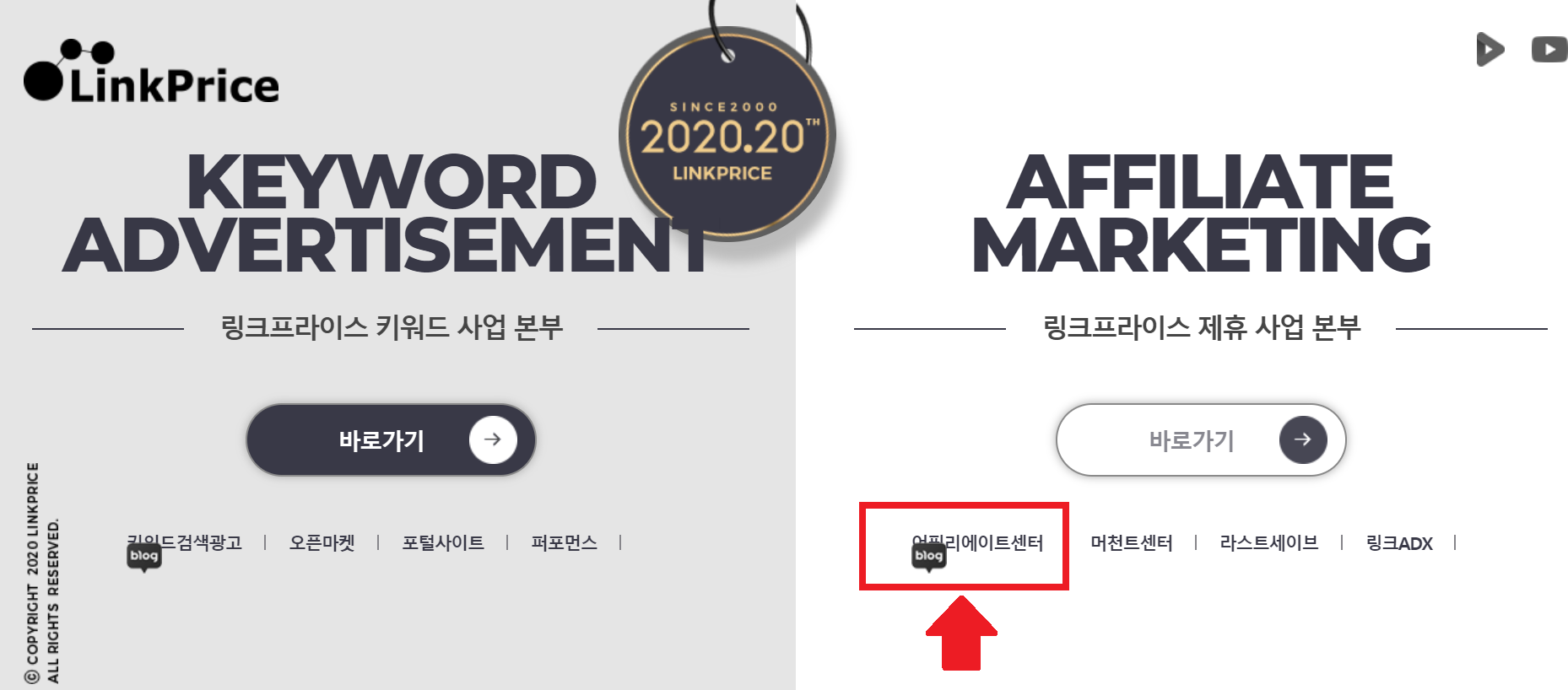 > 위의 이미지를 클릭하시면 해당 사이트가 열립니다. 빨간 박스의 [어필리에이트 센터]를 클릭해주세요.