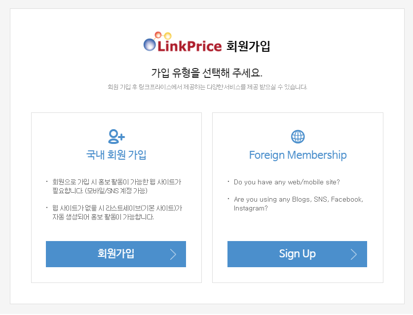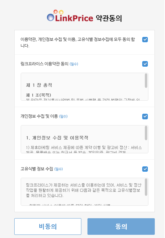 어필리에이트 가입은 무료이며, 사이트를 운영하시는 분들께선 개인, 사업자 구분없이 운영하시는 사이트만을 가지고 링크프라이스에서 제공하는 모든 광고물을 이용 가능합니다.