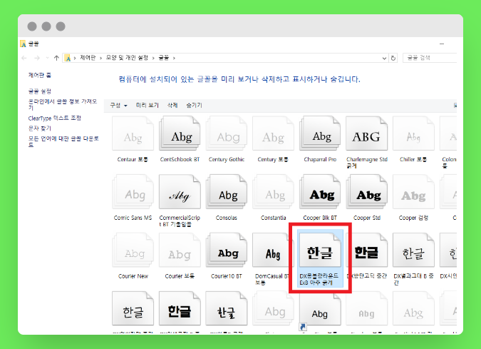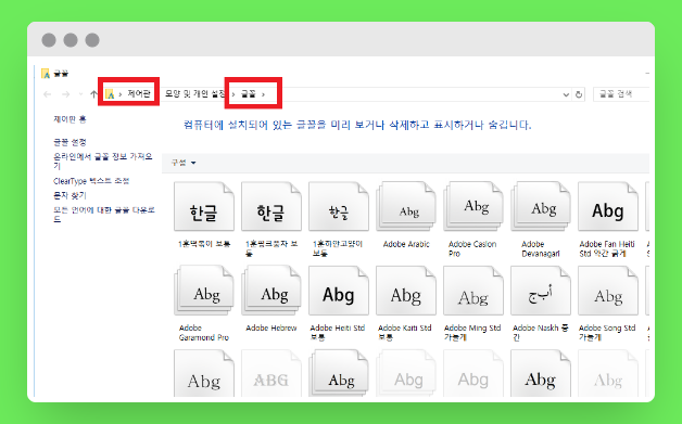 Step 7. 제어판 -> 글꼴 폴더에 들어가 주세요.