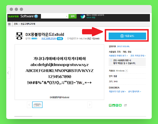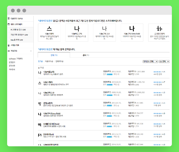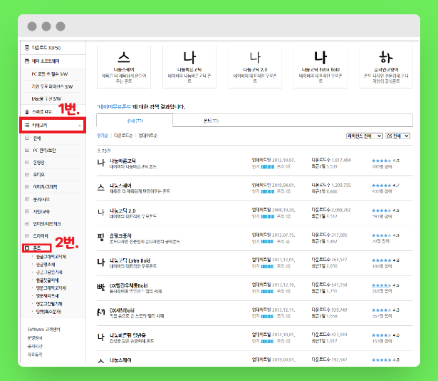 > 위의 화면이 네이버 폰트 다운로드 화면입니다.
