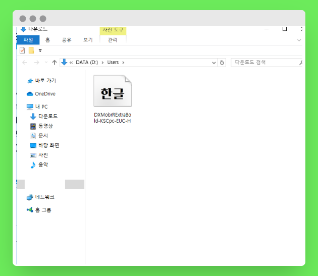 > 다운로드 폴더에 있던 글꼴 파일을 [글꼴] 폴더로 옮겨주셔야 합니다. 복사 -> 붙여 넣기로 옮겨주시면 됩니다.