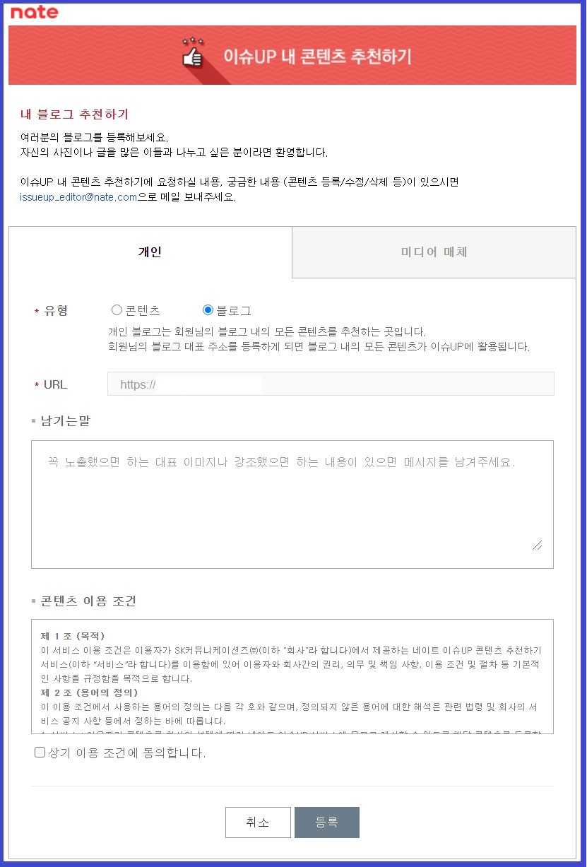 네이트에도 블로그 사이트를 등록할 수 있어?