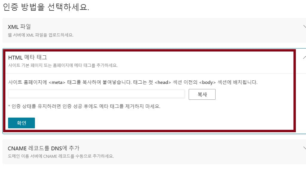 ※ HTML 메타 태그 인증하는 방법을 모르시는 분께서는 아래의 링크를 참고해주세요.