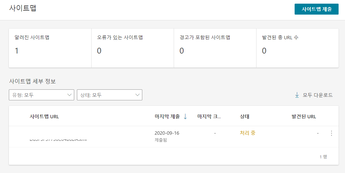 > 왼쪽 카테고리에서 [사이트맵]을 클릭하시며 사이트맵을 제출해주세요.