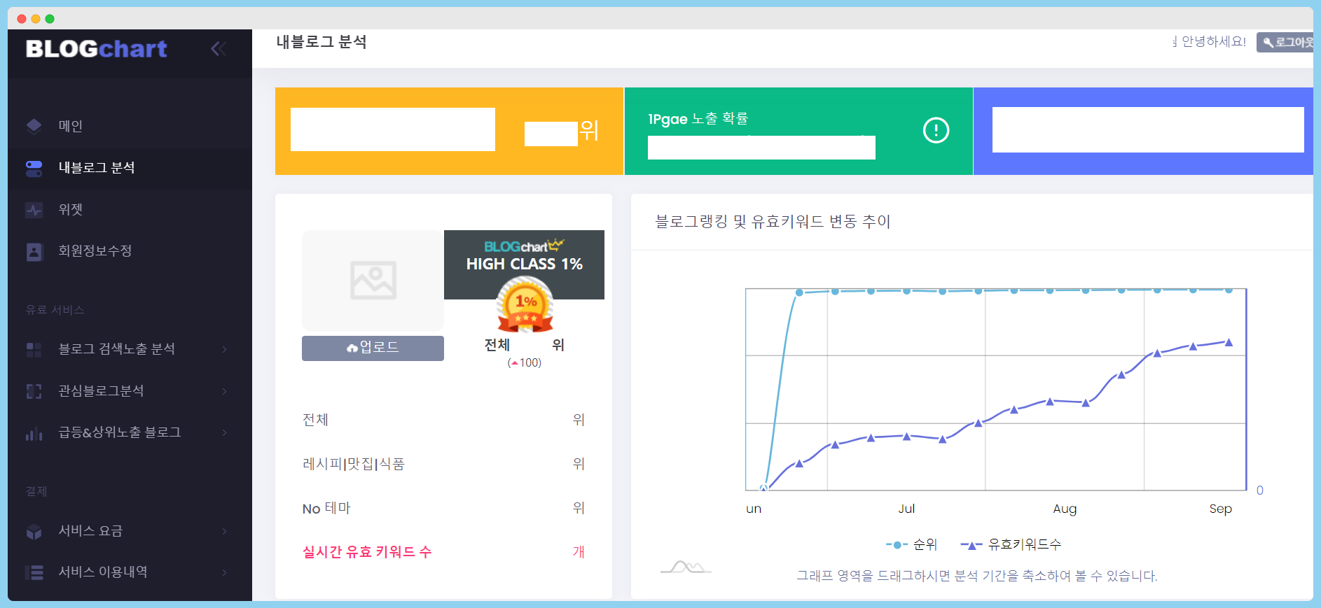 > 위의 이미지는 저의 블로그를 분석한 결과입니다.